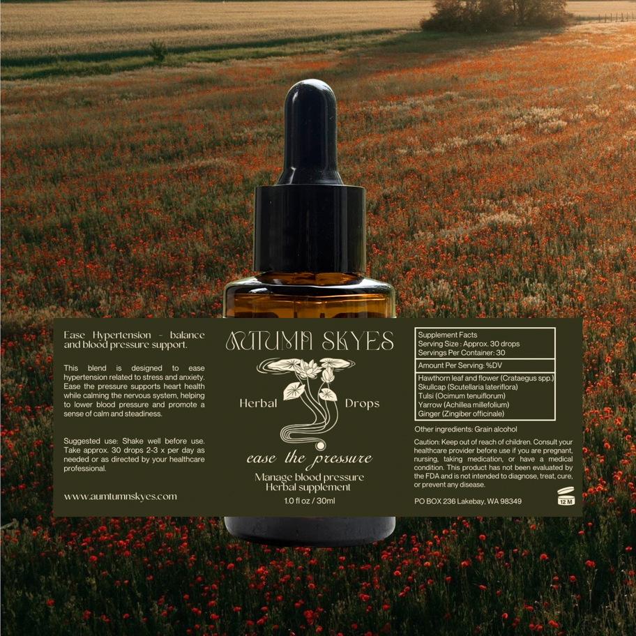 Stress and worry can leave the heart and blood vessels under constant strain. This blend is designed for those moments when blood pressure feels tied to tension— when the nervous system is on edge and the body can’t quite relax. These herbs work together to calm the mind, steady circulation, and support the heart.