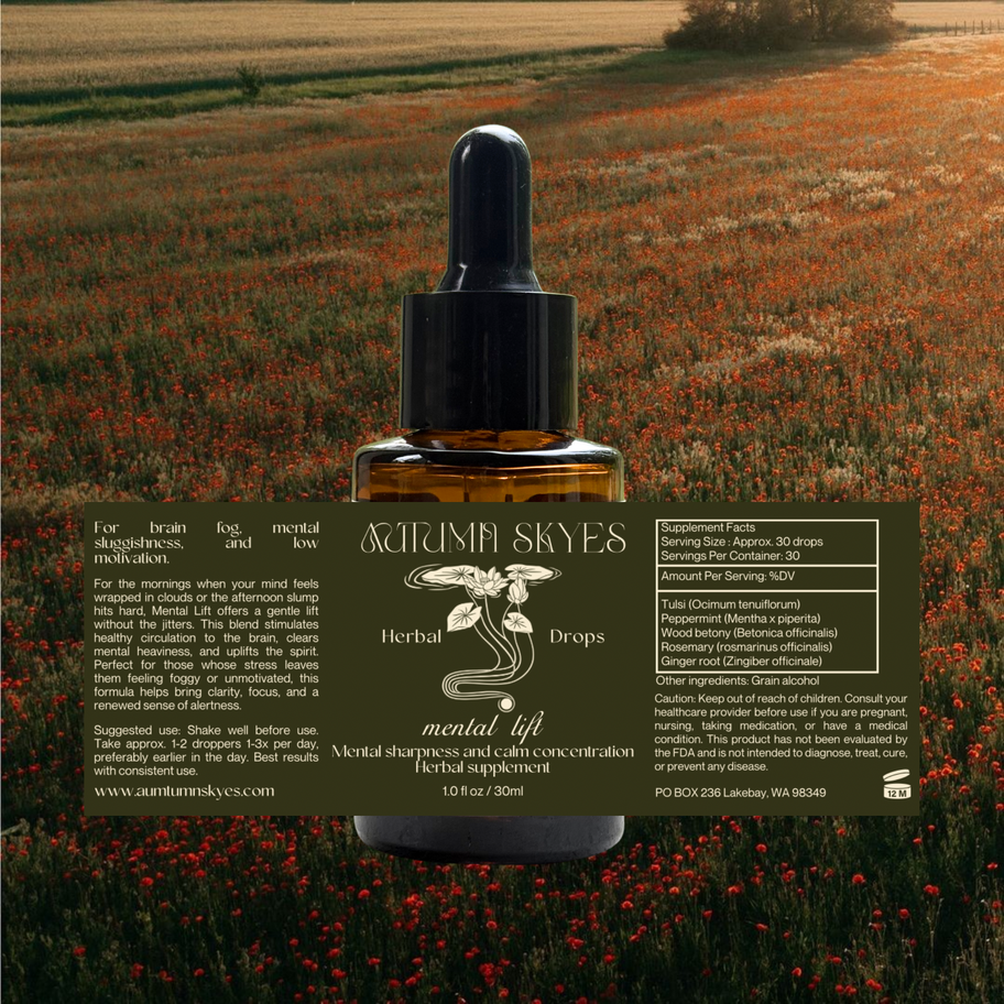 When you’re mind feels wrapped in clouds and motivation is low, Mental lift offers a gentle plant-based lift without the jitters. This blend stimulates circulation to the brain, clears heaviness, and uplifts the spirit so you can feel more present and engaged.