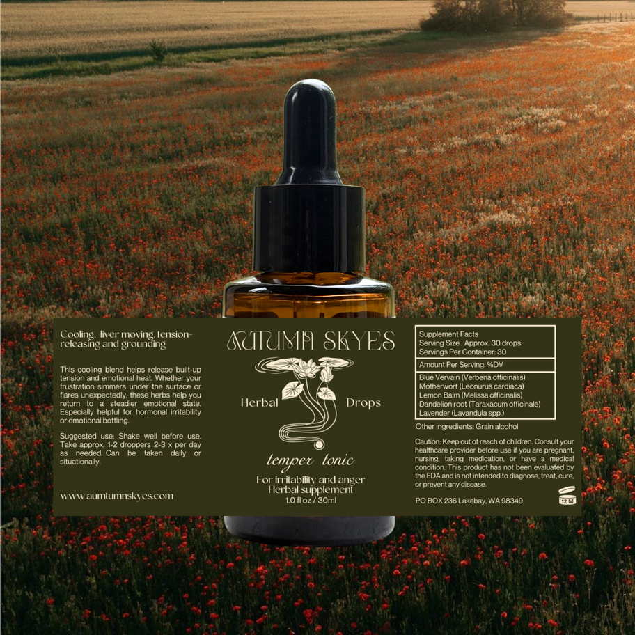 Anger and irritability can build up quietly or come out and short bursts. Temper tonic is designed to release that stored heat and tension, bringing you back to a steadier, more grounded state. Whether your frustration is tied to stress, hormones, or the pressure of bottling things up, this blend cools, calms, and helps the body and mind let go.